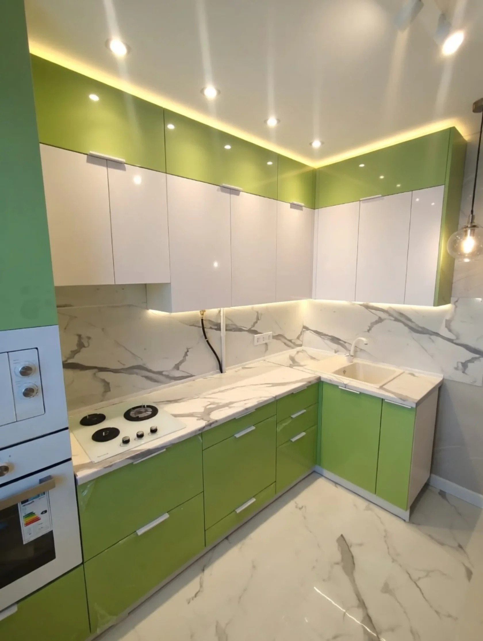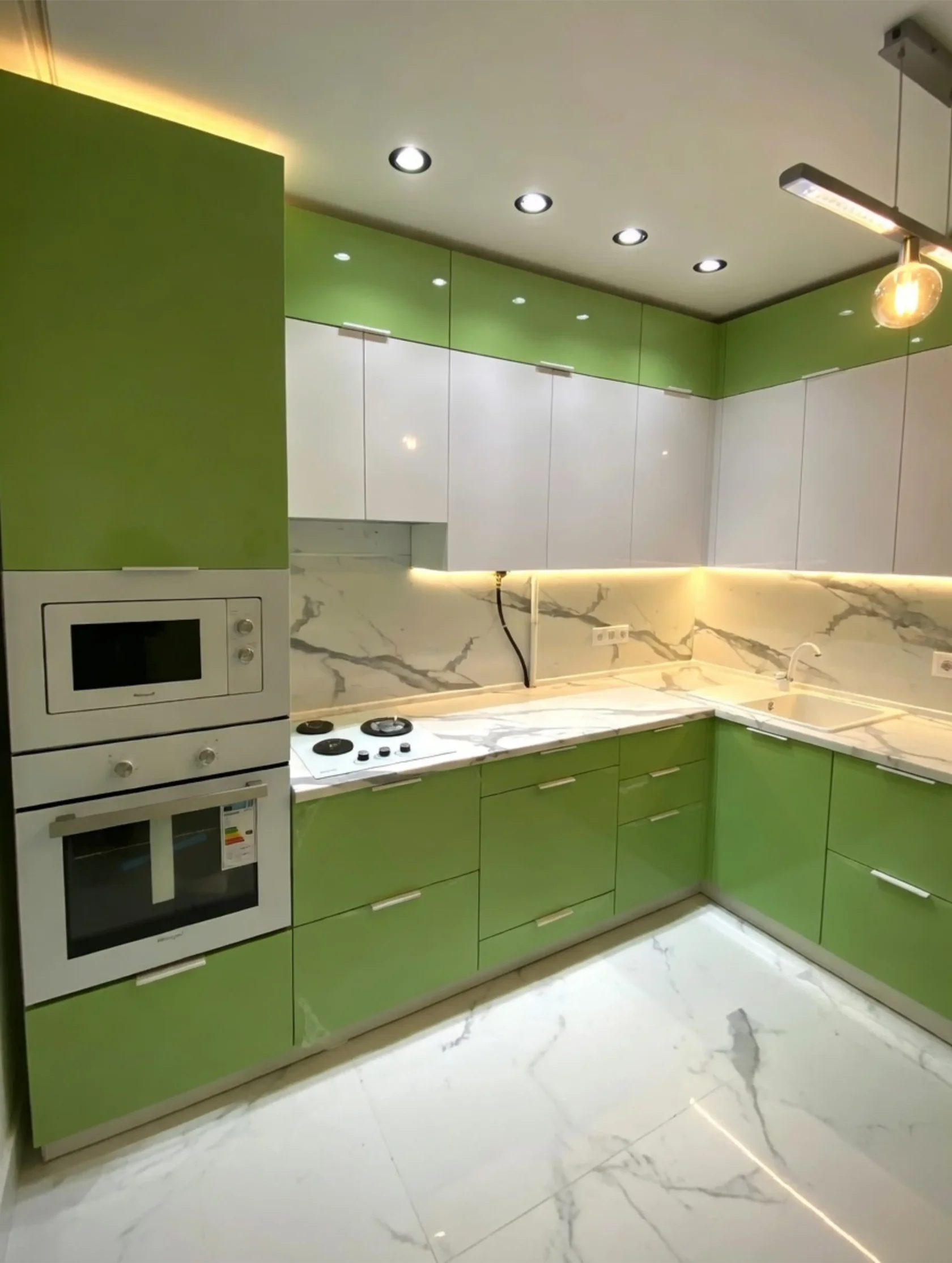 Кухня в освежающем зеленом цвете с пеналом 2750мм*1800мм
